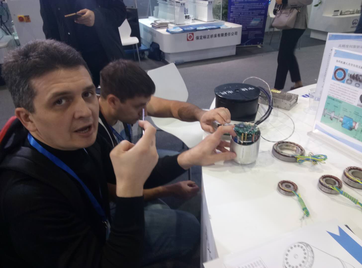 河北省宇捷電機(jī)科技有限公司此次參展電機(jī),不僅僅吸引了國(guó)內(nèi)友人的目光,同時(shí)博得了國(guó)外很多友人的關(guān)注,韓國(guó)友人一邊咨詢(xún)著電機(jī)的各種問(wèn)題一邊認(rèn)真的記錄到自己的本子上,俄羅斯友人邁克和好友,對(duì)每個(gè)產(chǎn)品都進(jìn)行了拍照和視頻記錄,以便回國(guó)后更方便的和我們進(jìn)行溝通,此次上海之行對(duì)河北省宇捷電機(jī)科技有限公司來(lái)說(shuō)收獲頗多。
