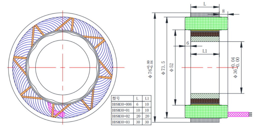 宇捷電機是直驅電機技術的執(zhí)著探索者,為客戶提供系列化直驅電機系統(tǒng)。DDSM系列正弦波無刷直流力矩電機(也稱DD馬達、正弦波無刷直驅電機)有多種疊厚和轉矩范圍,安裝方式簡捷,性能出色,使用壽命長,可為客戶提供專有定制方案。不同于有刷的直流力矩電機,DDSM系列正弦波無刷直流力矩電機無電刷磨損,無換向火花干擾,可靠性和壽命都有極大提高。近年來通過對DDSM系列正弦波無刷直流力矩電機的不斷優(yōu)化,全系列電機都具備以下優(yōu)秀特性:DDSM全系列電機轉矩波動不大于3%,轉矩常數線性度,在4倍超載的情況下,波動不大于±5%,為各類高精度光學和測控平臺提供了優(yōu)秀的精密動力。