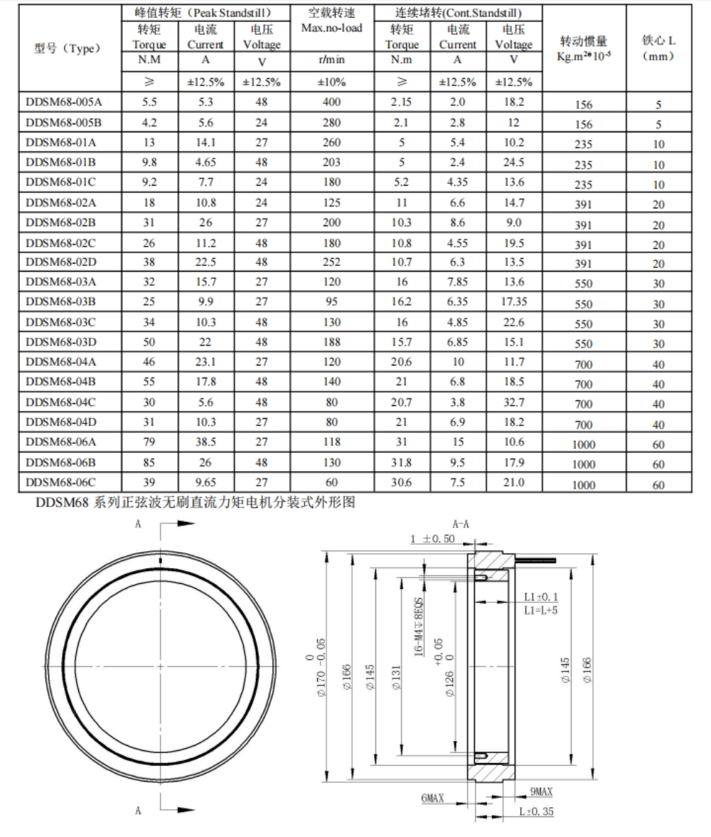 DDSM68系列無(wú)刷直流力矩電機(jī)